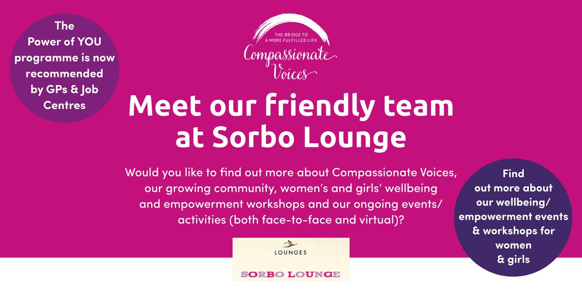 We’ve teamed up with Sorbo Lounge in Chesterfield to create a welcoming space where you can learn more about everything Compassionate Voices in a relaxed and informal environment.