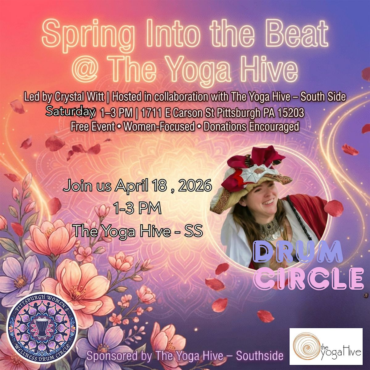 Join us Saturday, April 18 | 1–3 PM at The Yoga Hive – South Side for a rejuvenating Women’s Drum Circle led by Crystal Witt and presented by Pittsburgh Women’s Wellness Drum Circle — Sponsored by The Yoga Hive 🧘♀️