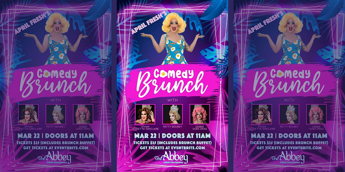 Join April Fresh, along with Vivan Vendetta-Sinclaire, Patty Bourey and Debbie Does Drag for a fun-filled comedy brunch at The Abbey!