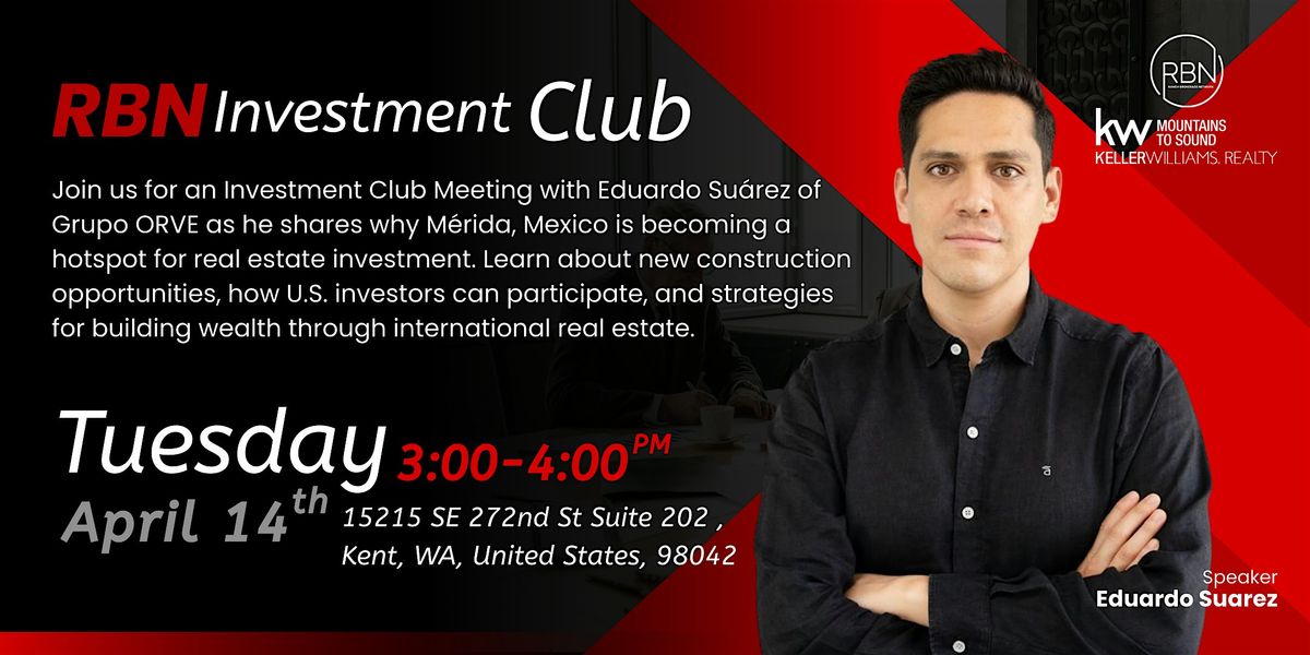 Join us for an Investment Club Meeting featuring Eduardo Suárez, Certified Real Estate Advisor and Commercial Manager at Grupo ORVE, a leading real estate developer in Mérida, Yucatán, Mexico.