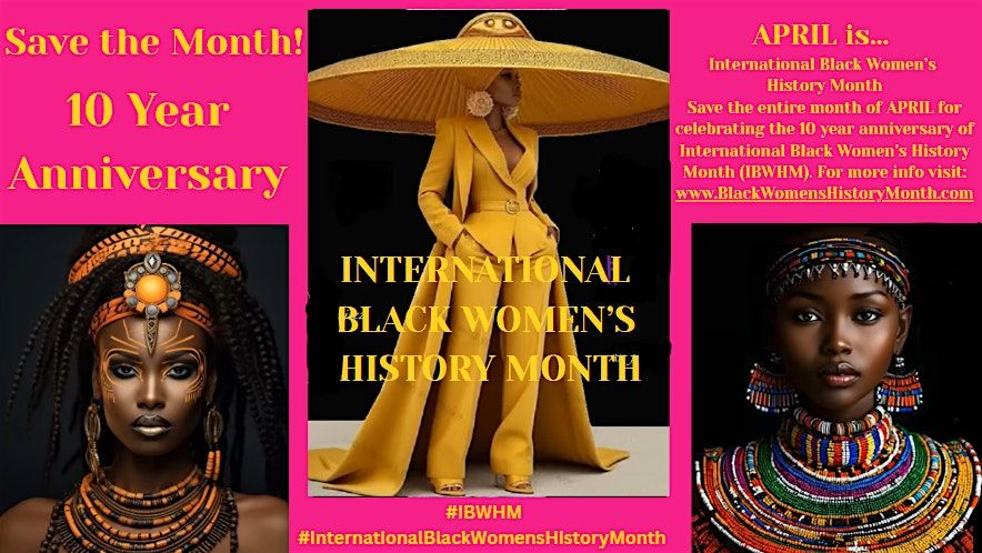 Come celebrate In Person and honor the incredible achievements, recognize the resilience, excellence and culture of Black Women worldwide that continues to inspire future generations. This year is the 10 Year Anniversary of International BLACK Women's History Month and a perfect time to learn, share, and uplift voices that continue to resonate within. Join us in marking this powerful month with energy and community spirit!