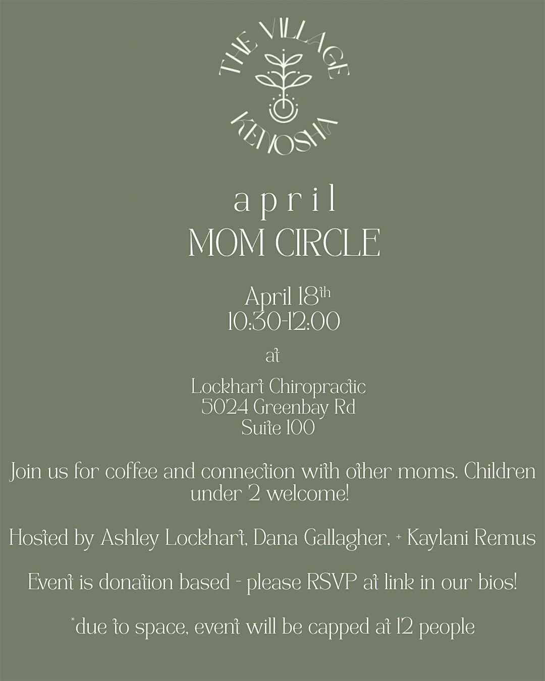 Join us on April 18th from 10:30β12:00 PM for a morning of connection, coffee, and real conversation. This circle is a gentle, supportive space for moms to feel seen, held, and reminded that none of us are meant to do motherhood alone.