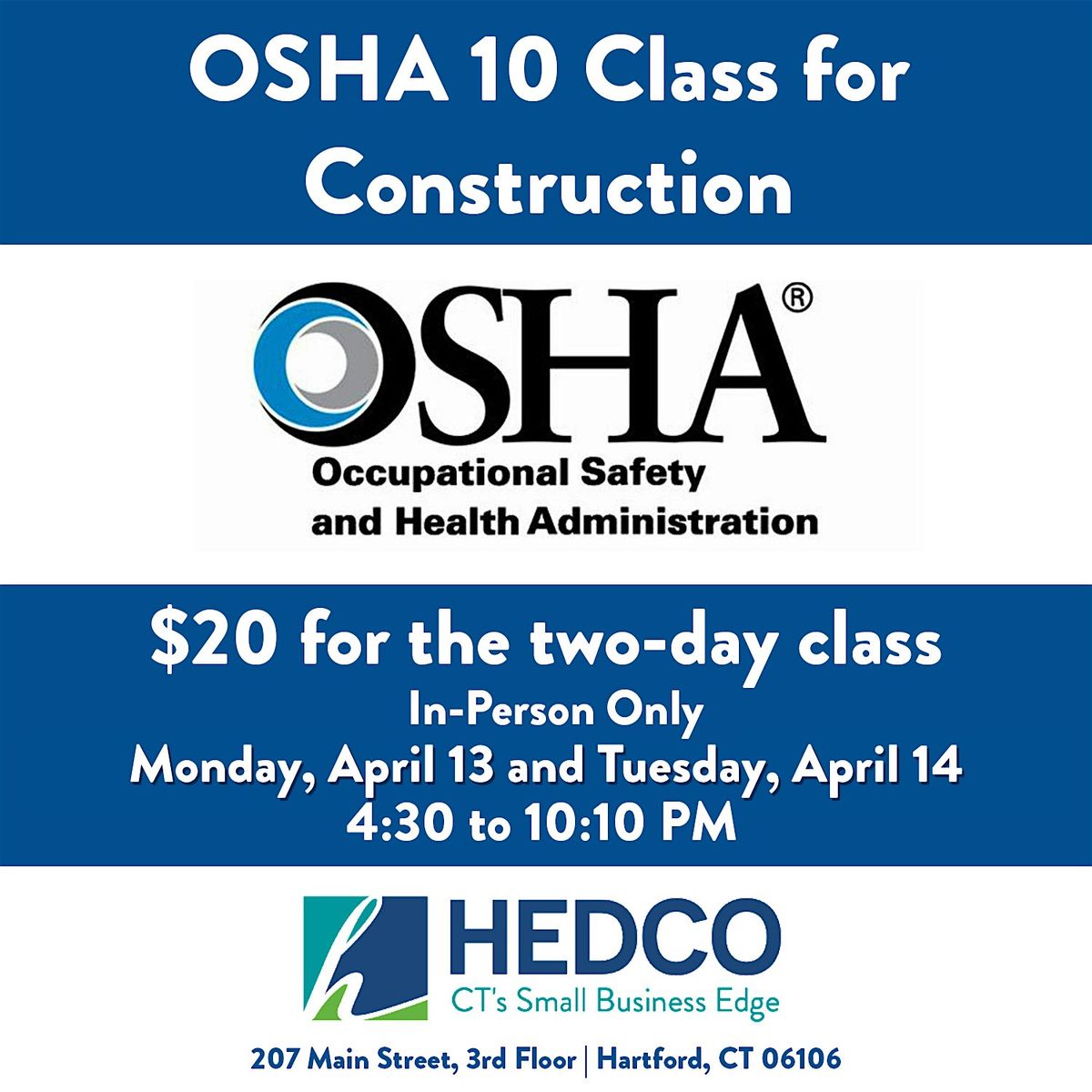 Join HEDCO, Inc. for a two-day OSHA-10 Hour Construction Training Class!