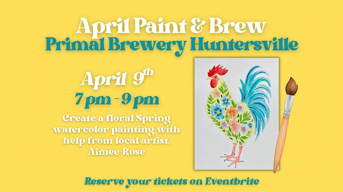 Join local artist Aimee-Rose of Art by Aimee-Rose for a fun and relaxing Paint & Brew night at Primal Brewery in Huntersville! In this guided class, you’ll create a charming spring floral rooster watercolor painting perfect for celebrating the season.