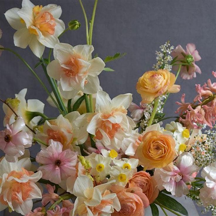 Welcome spring in full bloom with a fresh flower workshop celebrating classic seasonal favorites like tulips, hyacinths, and daffodils. In this hands-on class, students will learn how to work with the natural movement, fragrance, and color of spring flowers while creating a bright, garden-inspired arrangement.