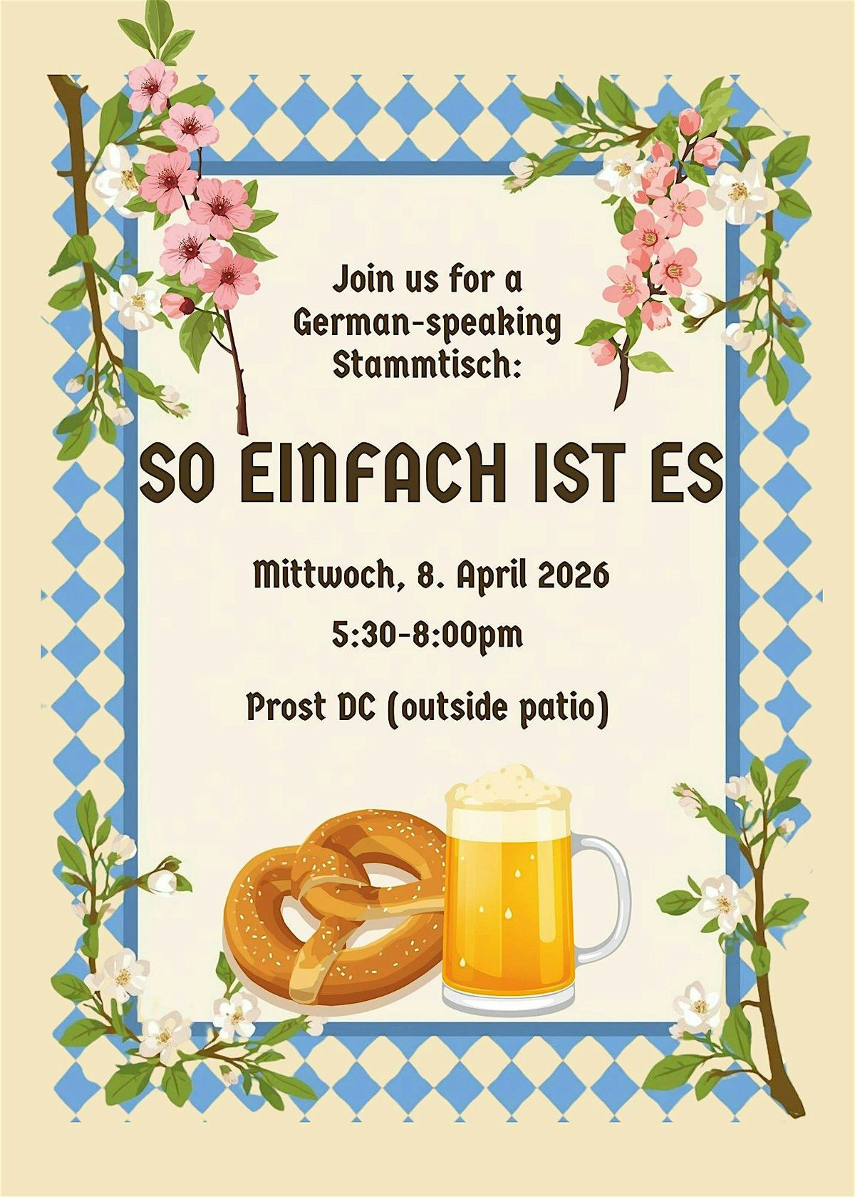 Join us on Wednesday, April 8 from 5:30pm-8:00pm at Prost DC to practice speaking German together. We will be outside on the patio to enjoy the spring weather/ Frühlingsgefühle. https://www.prostdc.com/