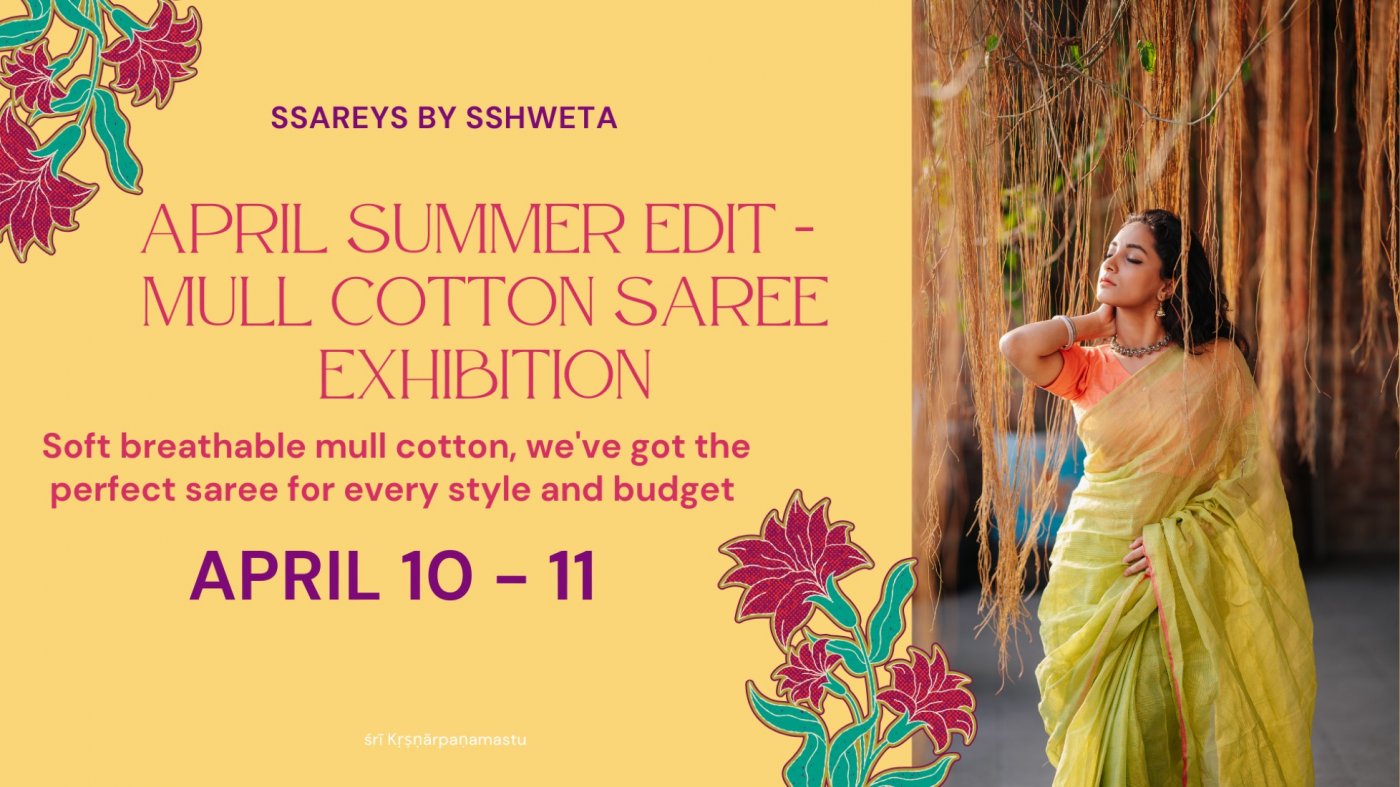 Summer is here! And so is the season of mull cotton sarees. Visit this exhibition and browse the April Summer edit collection, available in pure soft mull cotton sarees from Kolkata; exclusively curated by Sshweta Rajeswari. These sarees are incredibly soft and perfect for upcoming weddings or everyday wear. Do check out the collection now! Limited stock!