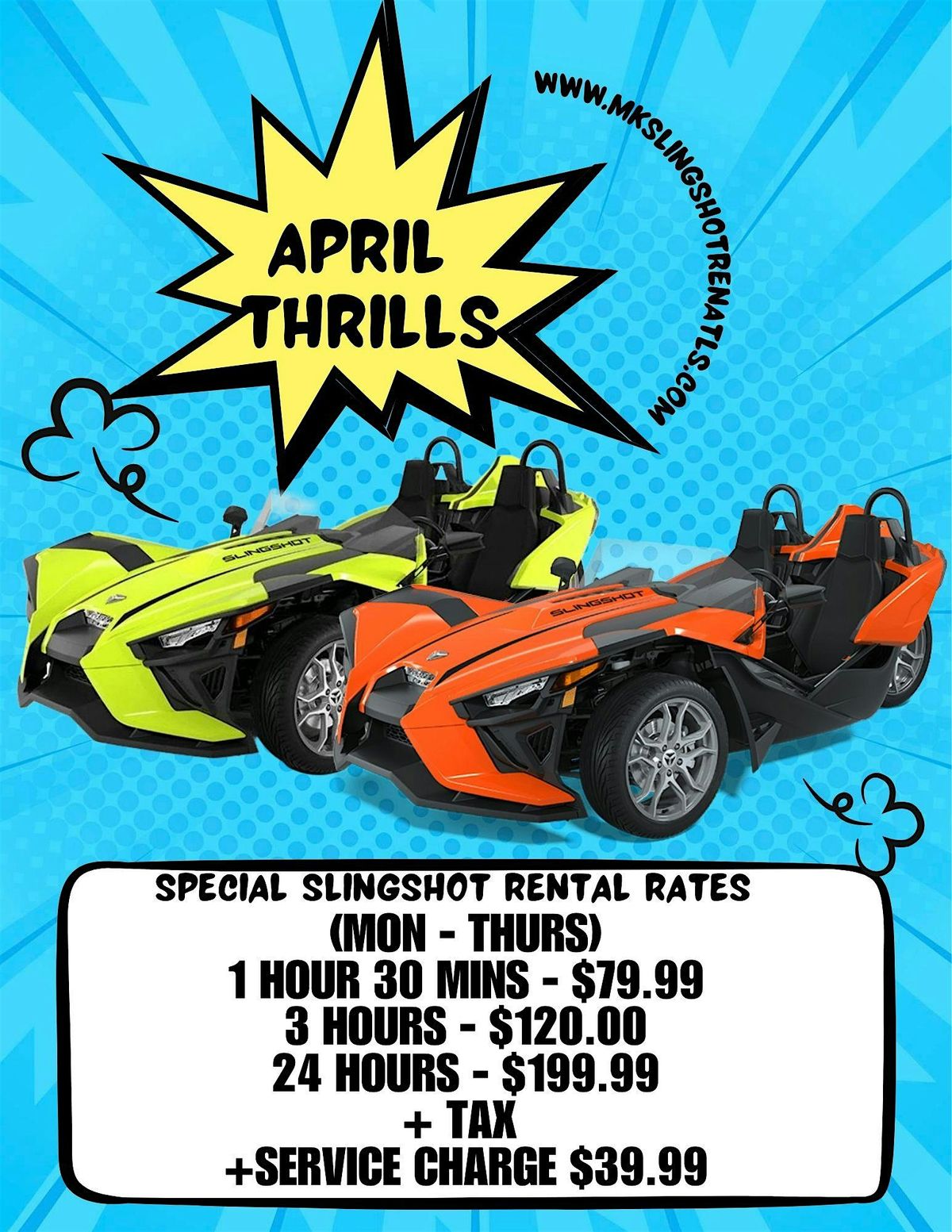 Info: This is a slingshot rental reservation link.purchasing a ticket will ensure that we hold a slingshot for you.