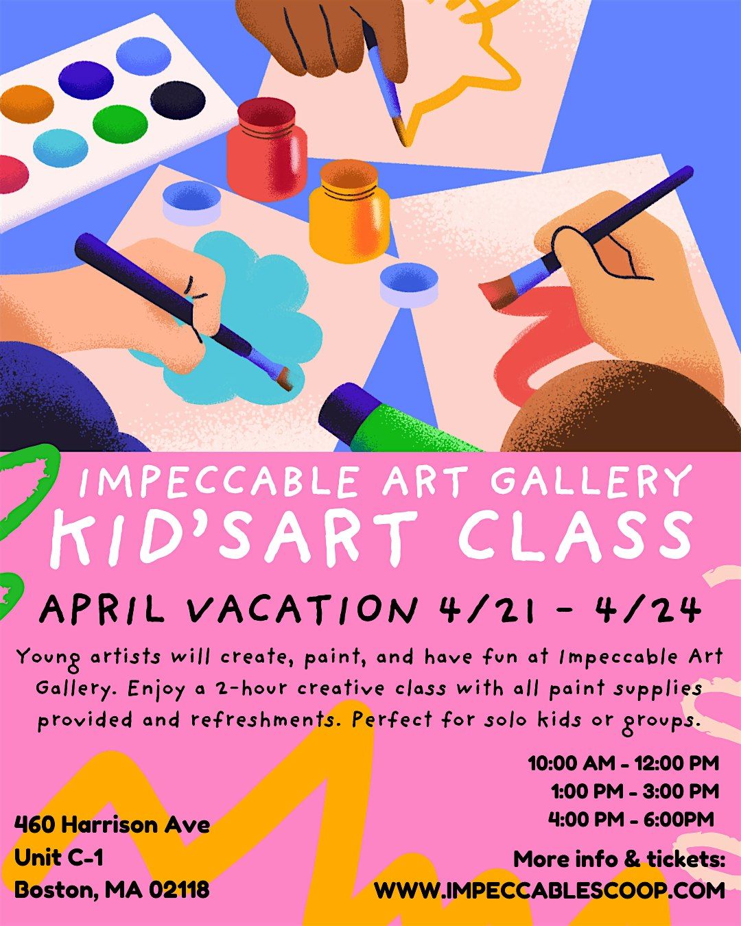 Let your little artists explore, imagine, and create at Kids Art Classes hosted by Impeccable Scoop in the heart of the SoWa Boston Art & Design District. These classes are all about creativity, confidence, and having fun with art—no experience needed.