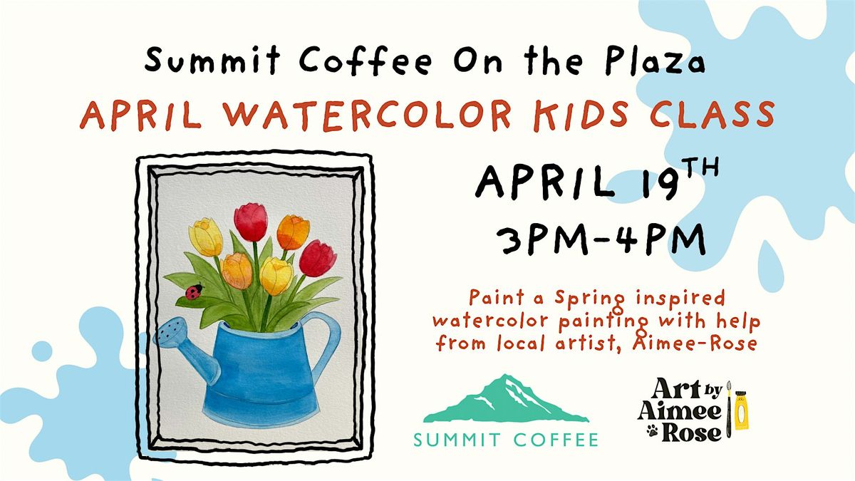 April Watercolor Kids Class at Summit Coffee (On the Plaza) 🌷🎨