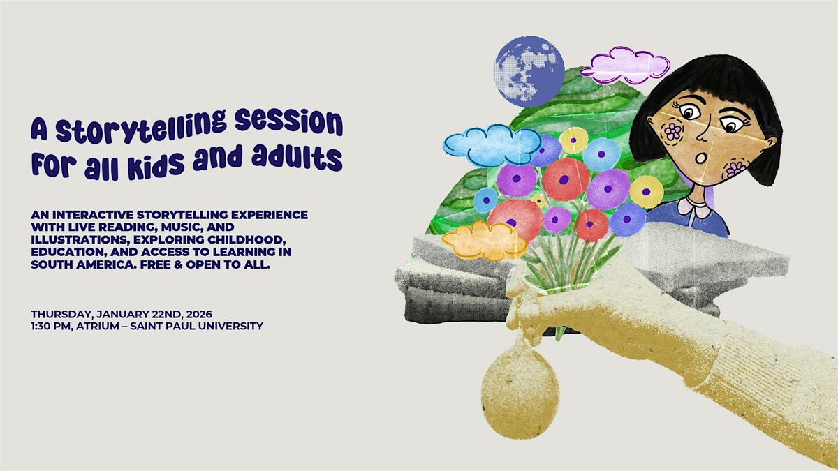 This interactive storytelling session brings together storytelling, music, and visual art to explore childhood, education, and access to learning in rural and remote communities across South America. Through a collective reading of April’s Questions, projected illustrations, and a facilitated conversation, the event invites kids and adults to reflect on the role of culture, creativity, and storytelling in building more inclusive and human-centered education systems.