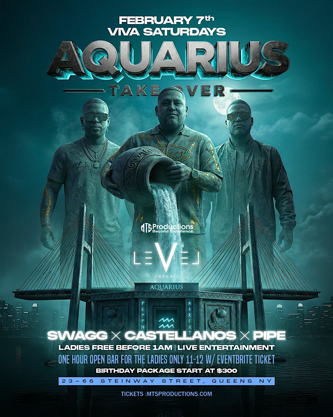 Viva Saturdays presents Aquarius Take Over, an exclusive Saturday night celebration taking over for one unforgettable night. This special edition of Viva Saturdays brings live entertainment, high-energy nightlife vibes, and a packed Astoria crowd ready to celebrate Aquarius season in style.