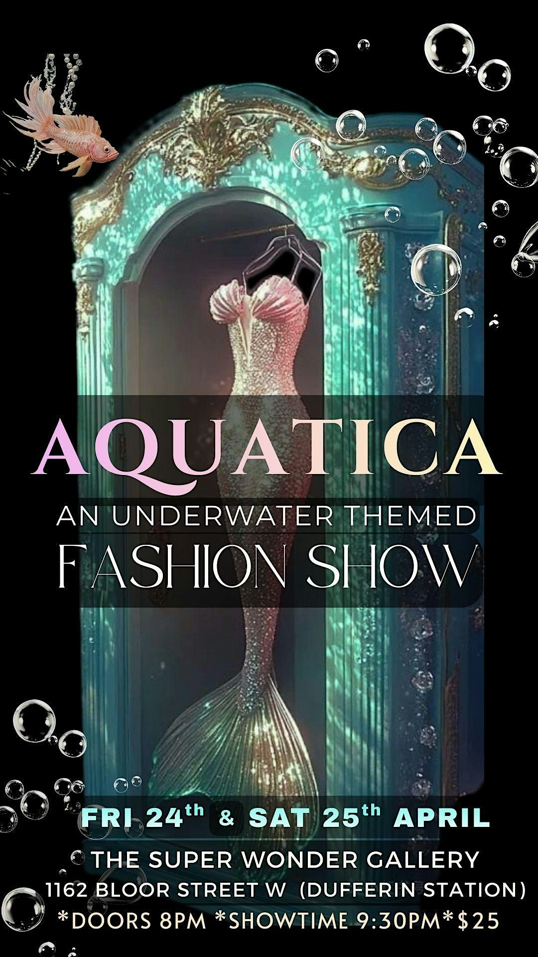 Join us for two epic evenings on Friday April 24th & Saturday April 25th at the Super Wonder Gallery for Aquatica: An Underwater Themed Fashion Show, featuring conceptual designs inspired by the mysteries of the Deep Sea and Mythical Underwater Creatures.