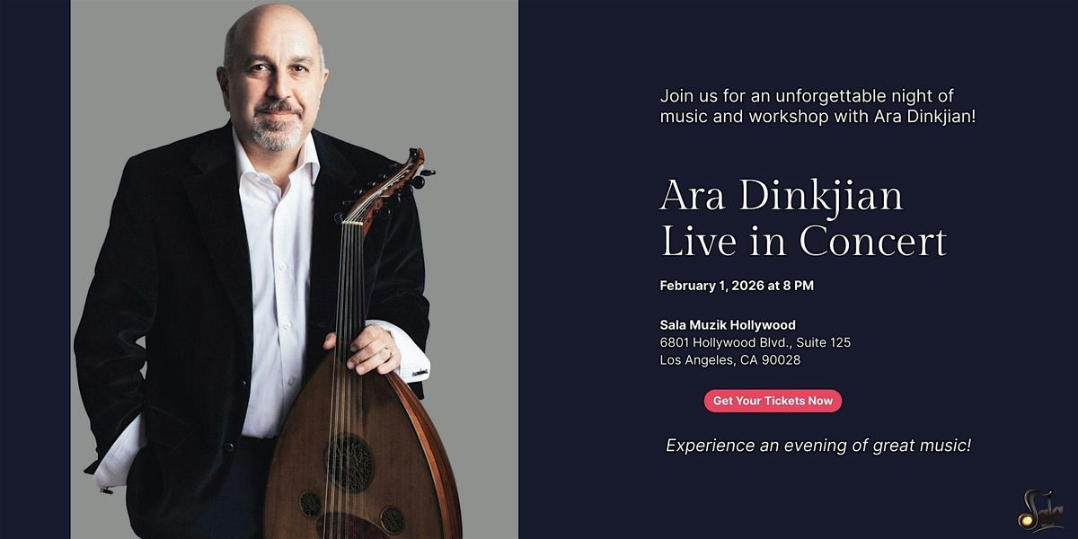 Get ready for an unforgettable night with Ara Dinkjian showcasing his incredible oud skills. This in-person event takes place right in the heart of Hollywood, where music lovers come together for an intimate and unique experience. Whether you're an oud fan or just love great tunes, this is the gig to catch!