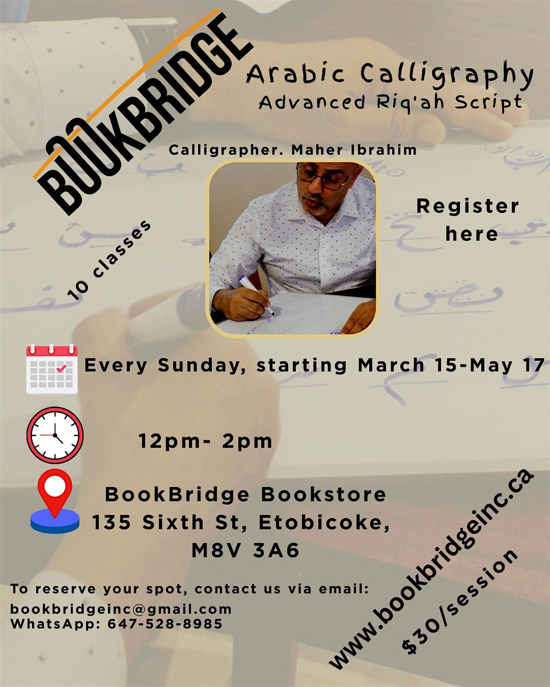 Come and explore the beauty of the advanced Riq'ah script at BookBridge A weekly class to learn Arabic calligraphy with an experienced calligrapher. It's more than just beautiful writing; it's a reflection of Islamic culture, spirituality, and historical traditions.