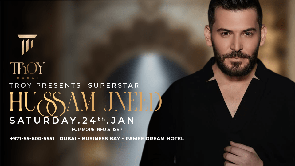 Join us as we welcome the Superstar HUSSAM JNEID for an exclusive live performance that will light up Dubai’s most iconic stage. Immerse yourself in breathtaking surroundings, world-class entertainment, and a dazzling performance..
