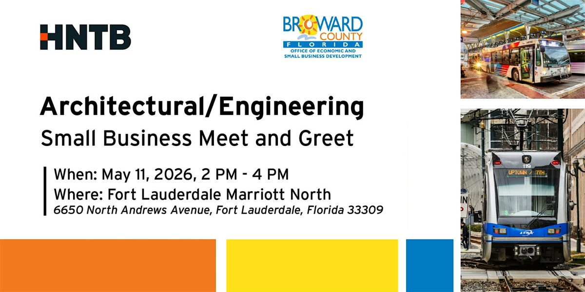 Join HNTB and the Broward County Office of Economic and Small Business Development (OESBD) for an engaging Architectural/Engineering Meet & Greet on May 11, from 2 – 4PM at the Fort Lauderdale Marriott North.