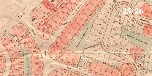 Image: Walter Burley Griffin, Castlecrag Estate, ca. 1921. Printed estate map showing lots, easements, and reserves annotated by hand in ink and pencil. Papers of Edgar Dean, National Library of Australia, MS 2019, Item 33.