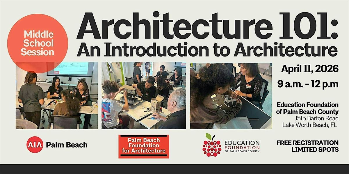Hey young architects to be! Join us in person for a fun and interactive Architecture 101: Introduction to Architecture workshop designed just for middle schoolers. Students will learn about what architecture is, what architects do, and work alongside architects to learn about architectural concepts and explore their own designs in groups using hands-on materials.