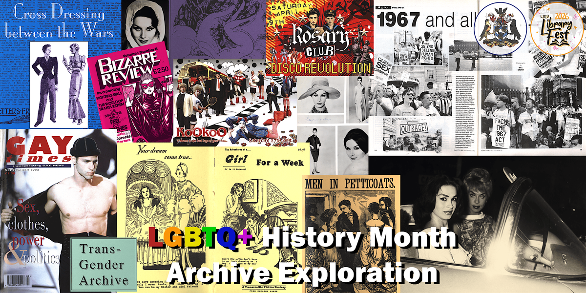 Featuring: our newest collection of April Ashley's papers related to her life and career as one of Britain's most historically important trans women; 1800s-1970s crossdressing and transgender history; 1980s-2000s LGBT club culture; queer life in fetish publications; gay life in women's colleges; and representations of LGBTQ+ people and culture in magazines and ephemera. Click here to read more about the archive material to be featured.