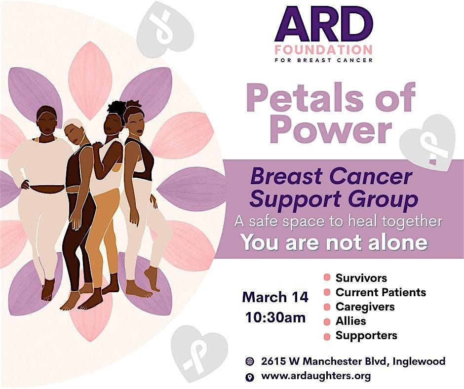 Join us for the ARD Breast Cancer Support Group, a gathering of individuals affected by breast cancer. This in-person event will take place at 2615 West Manchester Boulevard, Inglewood, CA, USA. The support group aims to provide a safe and understanding environment for sharing experiences, gaining emotional support, and finding solace in the company of others who have gone through similar challenges.