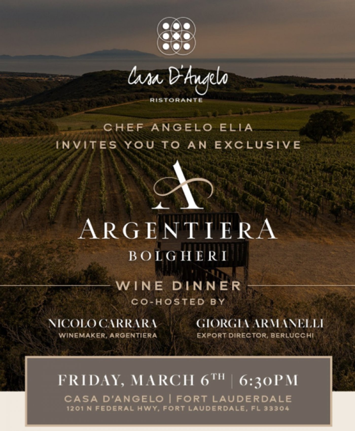 Casa D’Angelo Fort Lauderdale will host an exclusive Argentiera Bolgheri Wine Dinner on Friday, March 6th.