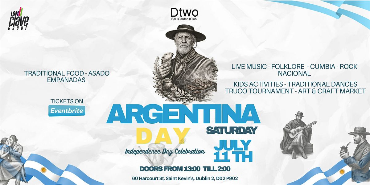 Celebrate Argentina's independence with us at Dtwo! Join us for a day filled with music, dancing, and delicious Argentine cuisine. Whether you're from Argentina or just love the culture, this event is perfect for anyone looking to have a great time. Bring your friends and family along for a day you won't forget!