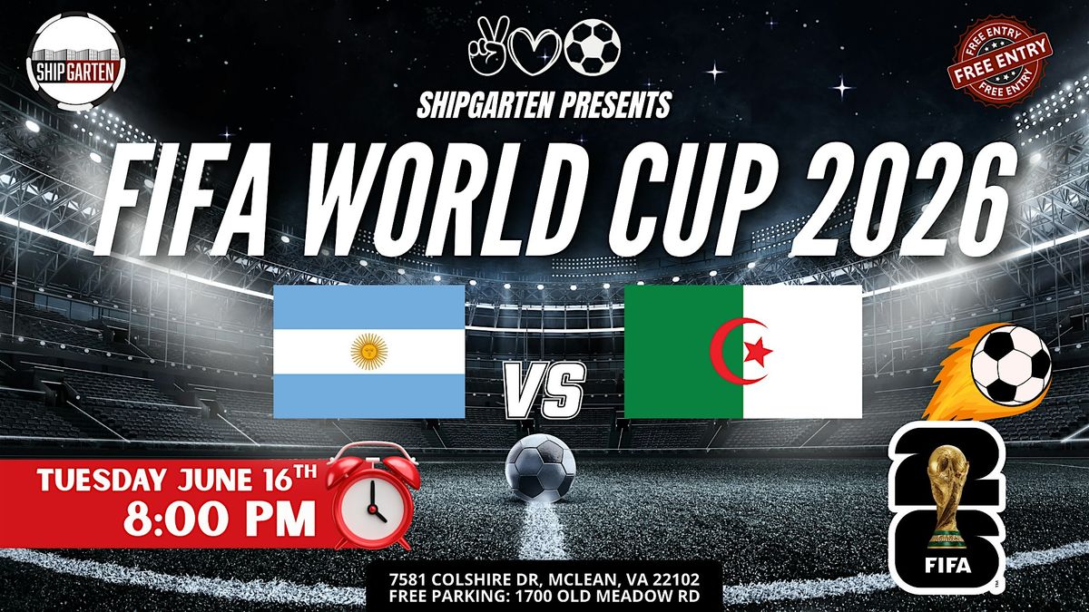 TUESDAY NIGHT. FULL STADIUM ENERGY. Argentina takes the stage.Algeria answers. 8PM kickoff means one thingShipgarten turns into the loudest World Cup watch party in Tysons. This isn’t casual viewing.This is passion. THIS IS HOW YOU WATCH ARGENTINA PLAY You don’t sit quietly.You don’t clap politely.You stand. You shout. You celebrate. Massive screens & stadium-level sound $40 Mix & Match Beer Buckets (5 – 16oz cans) 100+ beer varieties available All ages welcome (21+ to drink) The most energetic World Cup crowd in Tysons Cold beer. Loud crowd. Midday goals. If you’re going to watch the World Cup… watch it BIG. NIGHT MATCH. HIGH INTENSITY. Argentina brings championship mentality and attacking flair.Algeria brings speed, strength, and fearless momentum. Tuesday night at 8PM isn’t background noise.It’s full stadium atmosphere. Arrive early, prime time matches fill fast. GAME DAY DETAILS Tuesday, June 16th Kickoff: 8:00 PM Shipgarten – 7581 Colshire Dr, McLean, VA 22102 FREE & large parking at 1700 Old Meadow Rd FREE ENTRY – Pay only for what you consume Coming with your crew? Upgrade your match day. More Info Click Here The biggest crowd. The coldest beer. The loudest World Cup in Tysons
