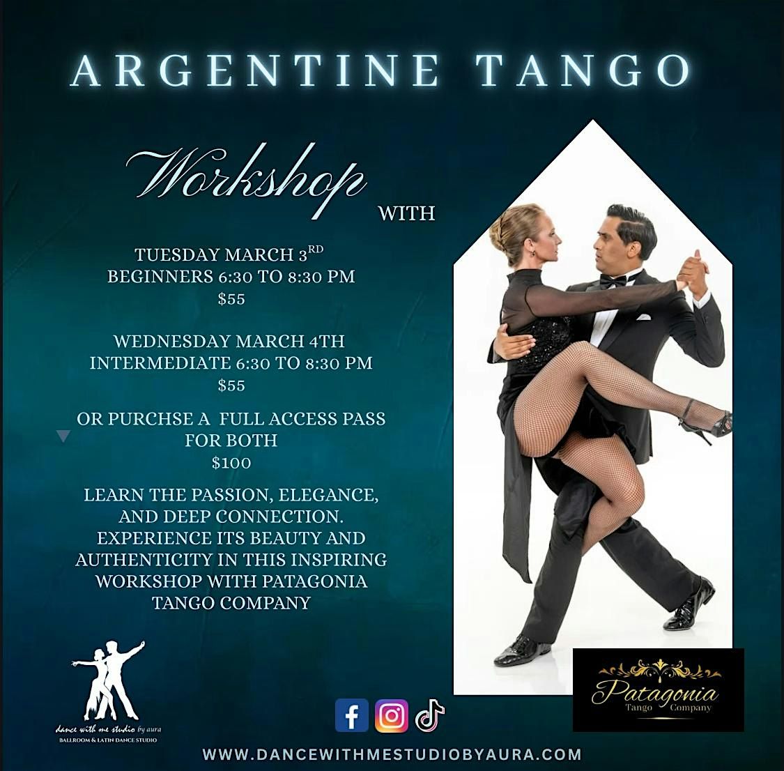 📅 Workshop 1 is $55 per participant on Tuesday, March 3rd (Argentine tango foundations)