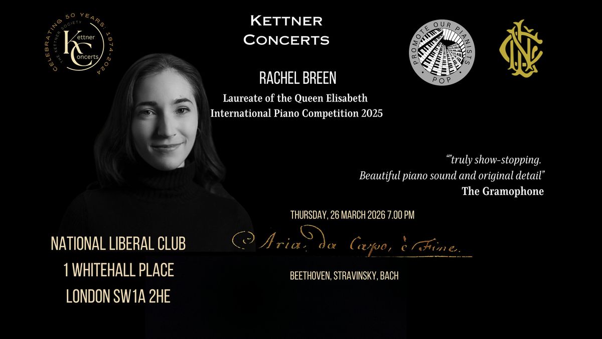 Available in the National Liberal Club's main Dining Room. A two-course express menu, priced at £29, will be available from 5.00 pm to 6.30 pm before the concert. Highly recommended! Bookings must be made directly with the Dining Room in advance of the concert day. Please email [email protected] or telephone 020 7968 0924 and quote "Kettner Concert". Guests are asked to adhere to the Club’s dress code should they wish to dine.