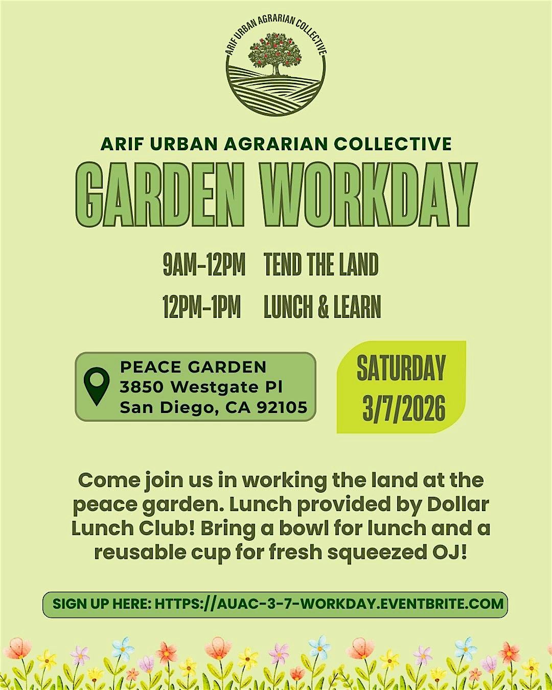 Join our next Arif Urban Agrarian Collective (AUAC) Workday at the Peace Garden!