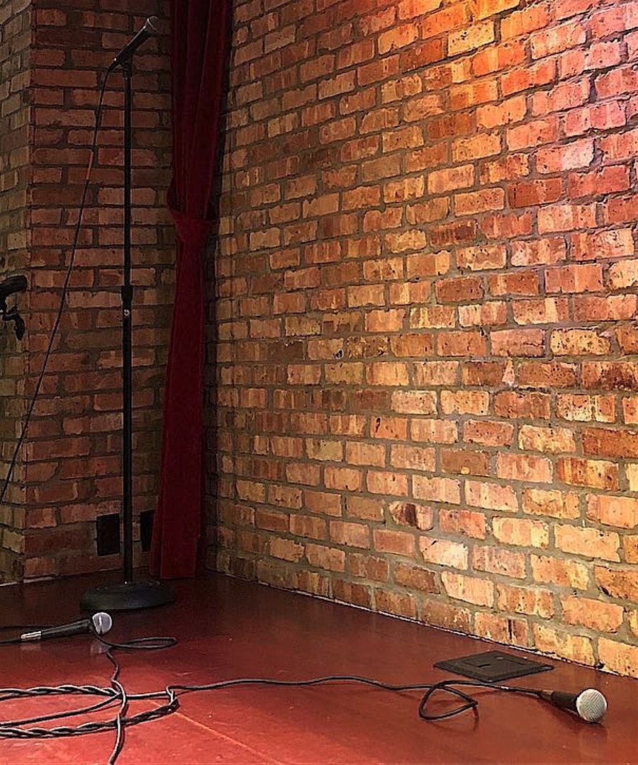 During a brief period living in London, Mochloulis performed stand-up at open mic nights at comedy clubs. Since then, he has drawn on the forms tools — humor, autobiography, and live address — as a framework for the creation of other artwork. His current research touches on observational and monologic performance traditions, such as improv, experimental theater, and stand-up comedy, with a focus on their methodologies, their dependence on a live audience, and the histories of the venues in which they take place.