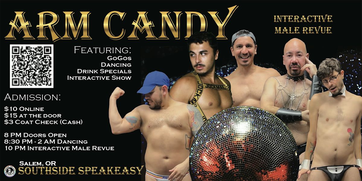Arm Candy is an inclusive Interactive Male Revue and Dance night. Everyone is welcome to come share in a night of fun where you feel sexy and flirtatious. Meet up with friends, make some new ones, and make memories.
