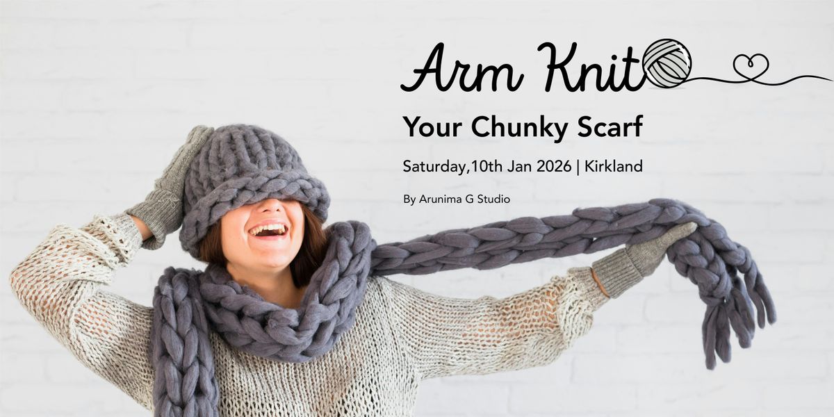 In this cozy, beginner-friendly workshop, you’ll learn how to arm knit a chunky scarf – no needles, no prior knitting experience, just your arms and some yarn.