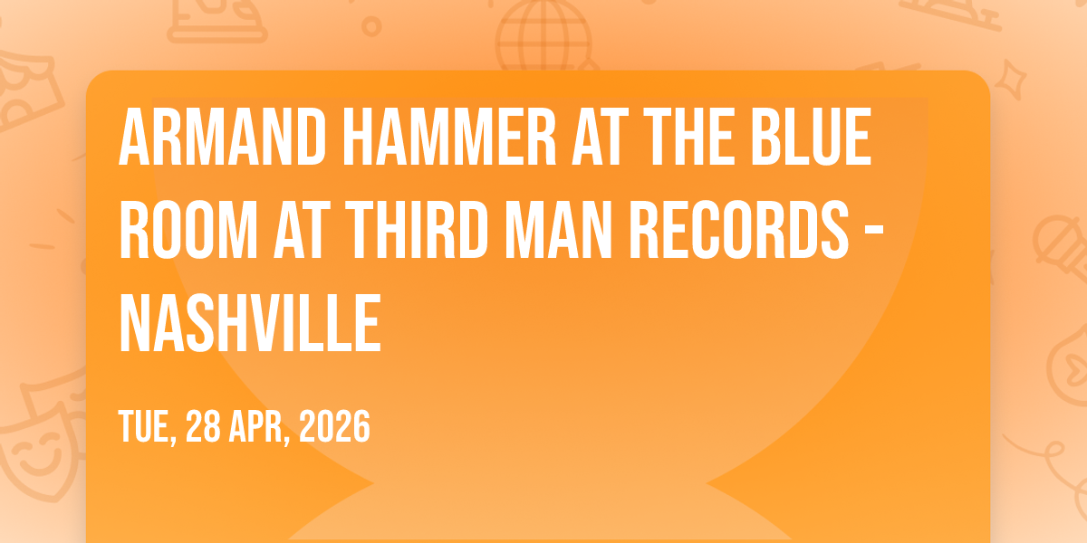 π Welcome to Armand Hammer at The Blue Room at Third Man Records - Nashville, where the impossible becomes possible and dreams take flight! ποΈ Join us at The Blue Room at Third Man Records - Nashville in the heart of Nashville, TN for an event that will redefine your expectations. π On April 28th, 2026 at 08:00 PM, witness the transformation of space and time into something truly magical. β¨ It's a curated experience combining the best of innovation, entertainment, and community spirit, creating moments that will be remembered for years to come. Whether you're a first-time visitor or a seasoned enthusiast, prepare to be amazed. π Book now to ensure your place in this unforgettable experience!