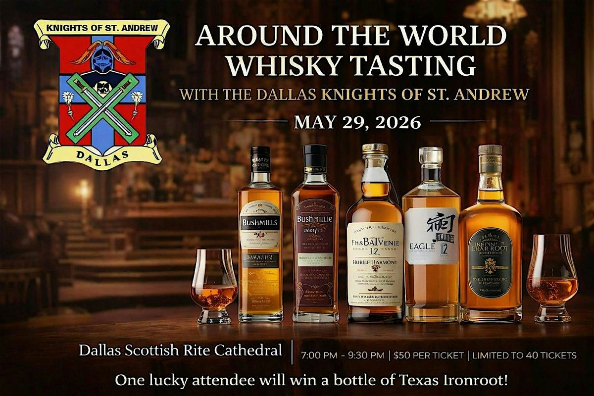 Join the Dallas Knights of St. Andrew for an unforgettable evening of fine scotch, fellowship, and international flavor at the historic Dallas Scottish Rite Cathedral on Thursday, May 29th for our Around the World Scotch Tasting.