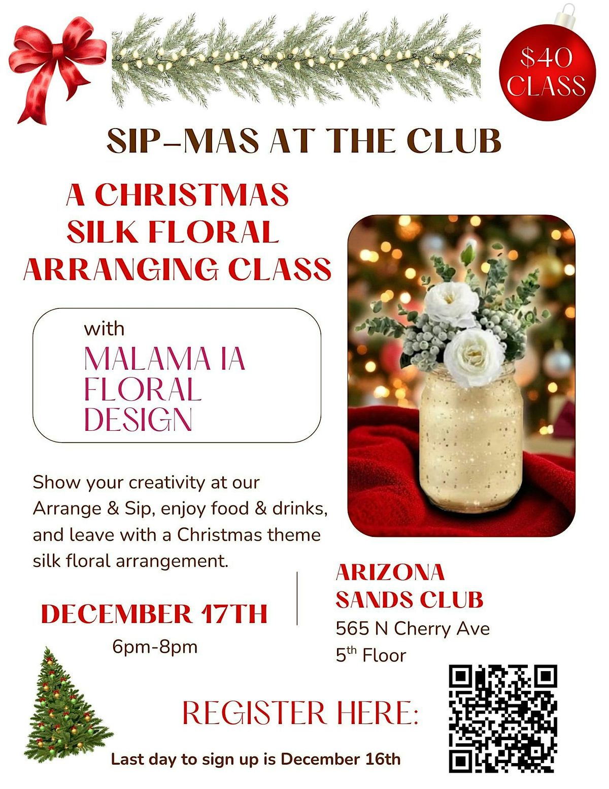 At this event, you'll enjoy arranging a beautiful Christmas themed silk floral arrangement. This is a wonderful event to bring your date, friend and family to!