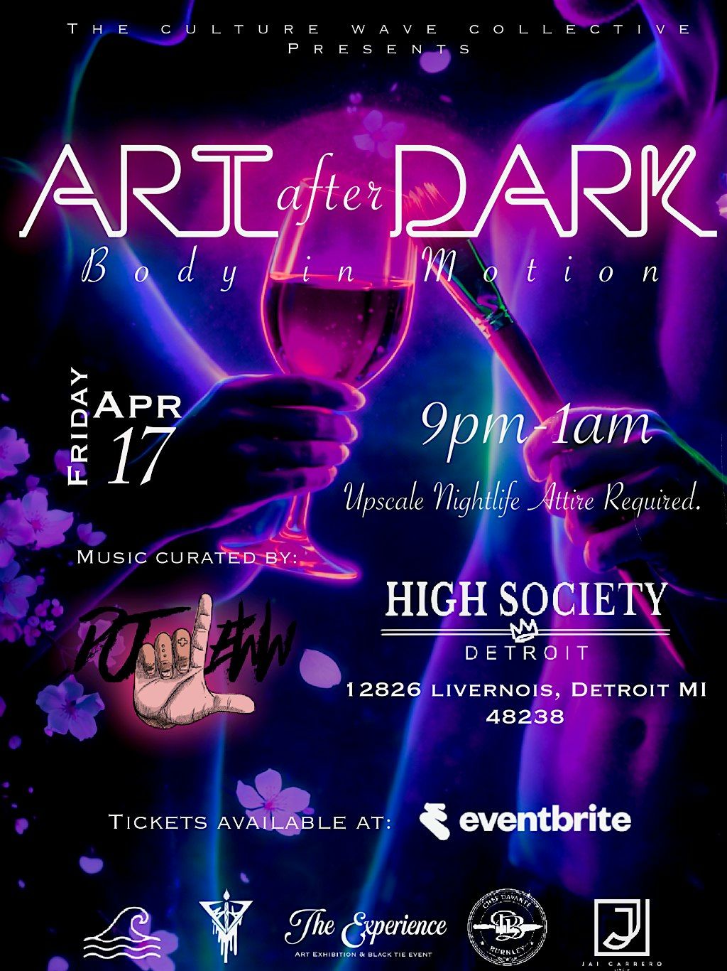 Art After Dark is Culture Wave Collective’s signature after‑hours experience — a refined, immersive night where artistry, movement, and elevated dining converge. Step into an atmosphere crafted with intention and beauty, where every detail invites you to slow down, observe, and indulge in creativity in motion.