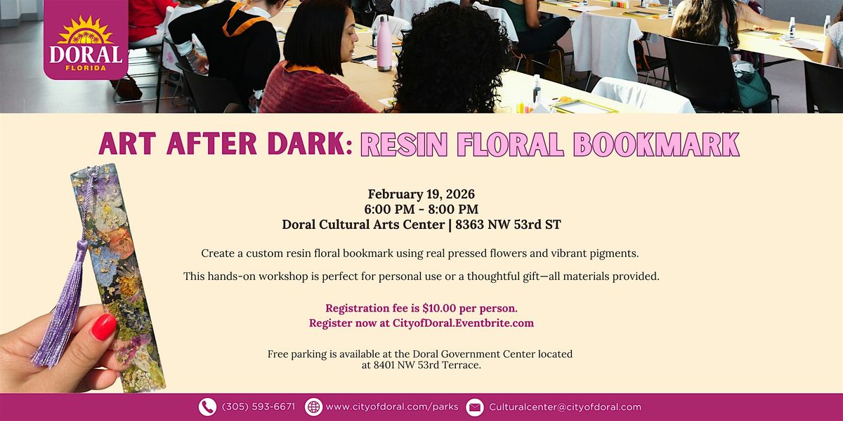 Space is limited. Free parking is available at the City Hall Parking Garage, 8401 NW 53rd Ter, Doral, FL 33166, until 9:00 PM.