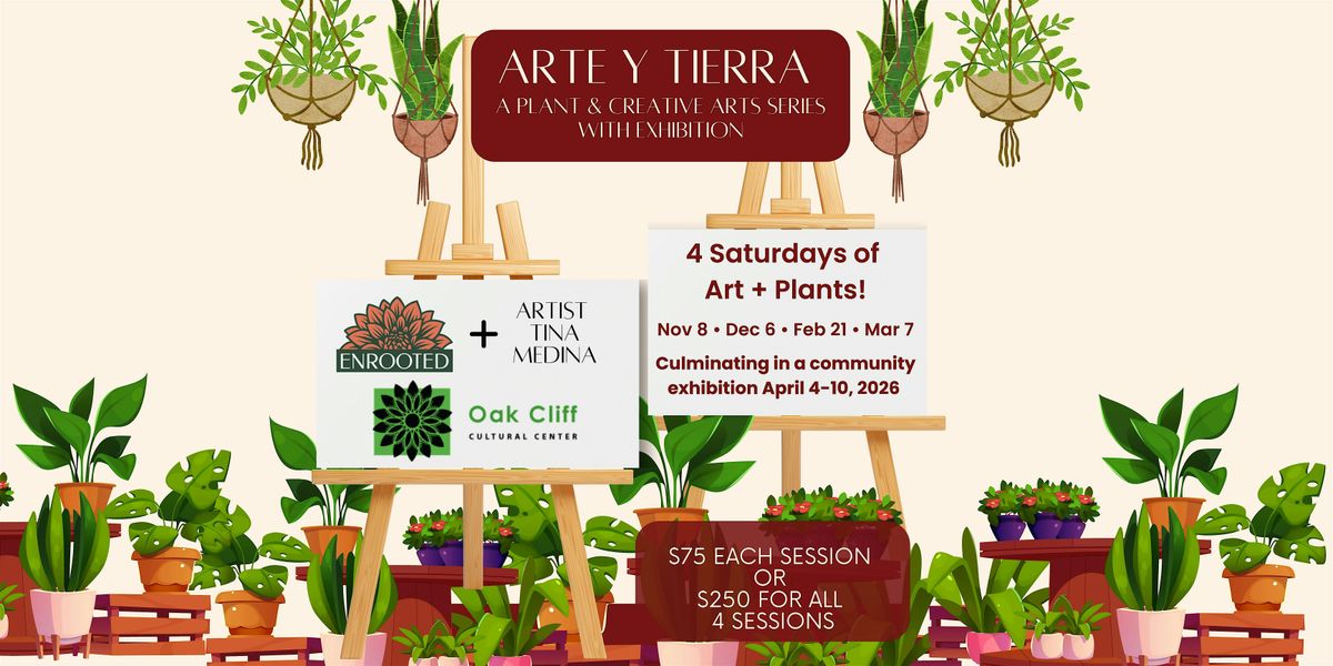 Welcome to Art & Soil, Arte Y Tierra! Join us at the Oak Cliff Cultural Center for a day filled with creativity and connection to the earth. The series of events celebrate the beauty of nature through various art forms, from painting to sculture. Come explore the intersection of art and soil with hands-on workshops, live demonstrations, and interactive exhibits. Whether you're an experienced artist or just looking to try something new, there's something for everyone at Art & Soil, Arte Y Tierra. Don't miss out on this unique opportunity to immerse yourself in the world of art and nature! Join one at $75 or all 4 at $250.