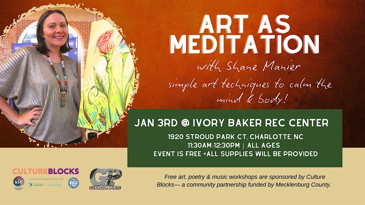 Free art, poetry & music workshops are sponsored by Culture Blocks— a community partnership funded by Mecklenburg County.