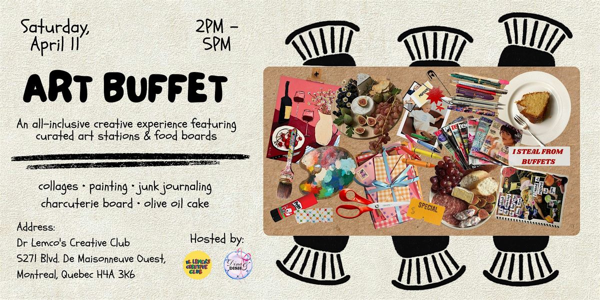 Join us and Dr Lemco for an all-inclusive creative experience where you can explore different art stations including collage, painting, and junk journaling. Think of it like a buffet… but for art 😌🎨