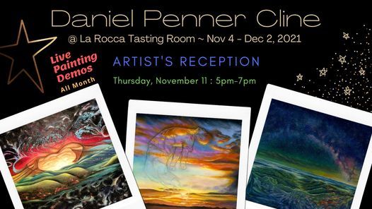 Inspired by images of space and sunsets, Daniel explores combining the two into a single image in his unique artworks. On each painting, he applies upwards of a hundred thin layers of acrylic and sometimes oil paint, usually on wood.