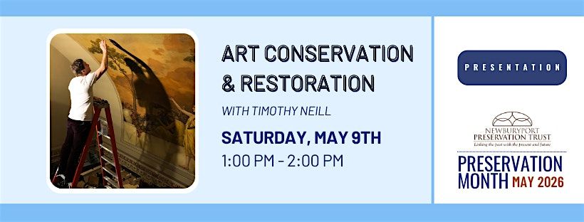 Painting Conservation: Timothy Neill will discuss the conservation of paintings and frames. He will give an overview of some different conservation and restoration techniques and discuss materials used in the studio as well as ethics involved with working on historic works of art. Tim will also give some helpful pointers on how to keep your artwork at home in the best possible condition.