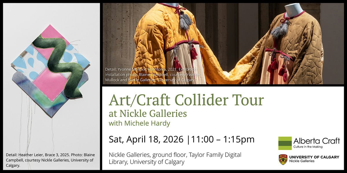 Join Michele Hardy, for a tour of Nickle Galleries’ newest exhibitions, Yvonne Mullock: Why don’t you… and Heather Leier: Practice Pinny exploring the work of two Calgary-based women artists unafraid of blurring boundaries. Following the exhibition tour, Hardy will offer a behind-the-scenes visit to the textile vault where we will examine recent textile acquisitions that similarly bridge art and craft including works by Wendy Toogood, Pat Adams, Laura Vickerson, Mackenzie Kelly-Frère and Richard Boulet, amongst others.