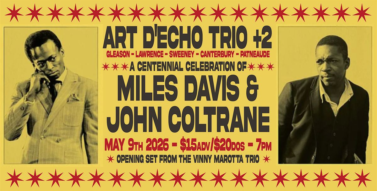 Join us for an incredible night of LIVE JAZZ with Art D'Echo Trio +2: a Centennial Celebration of Miles David & John Coltrane, with an opening set by our friends the Vinny Marotta Trio!