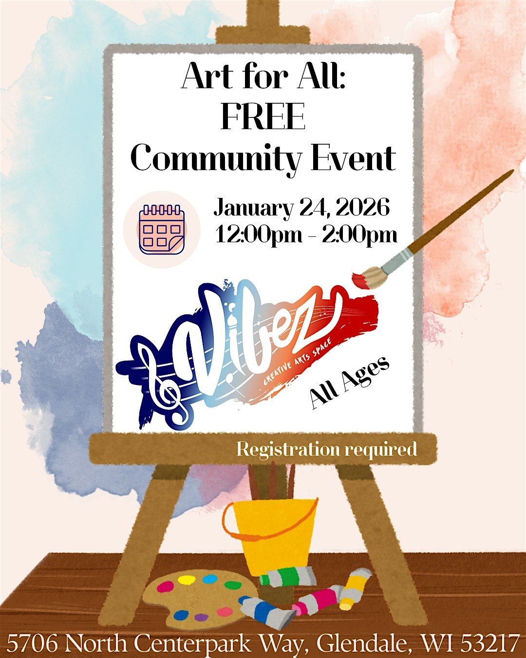 Welcome to Art For All: A Free Community Event! Join us at 5706 N Centerpark Way on January 24, 2026 at 12:00 PM (Central Time) for a day filled with creativity and fun. This event is all about celebrating art in its many forms and bringing the community together. Whether you're a seasoned artist or just looking to explore your creative side, there will be something for everyone to enjoy. Don't miss out on this opportunity to immerse yourself in the vibrant world of art. See you there!