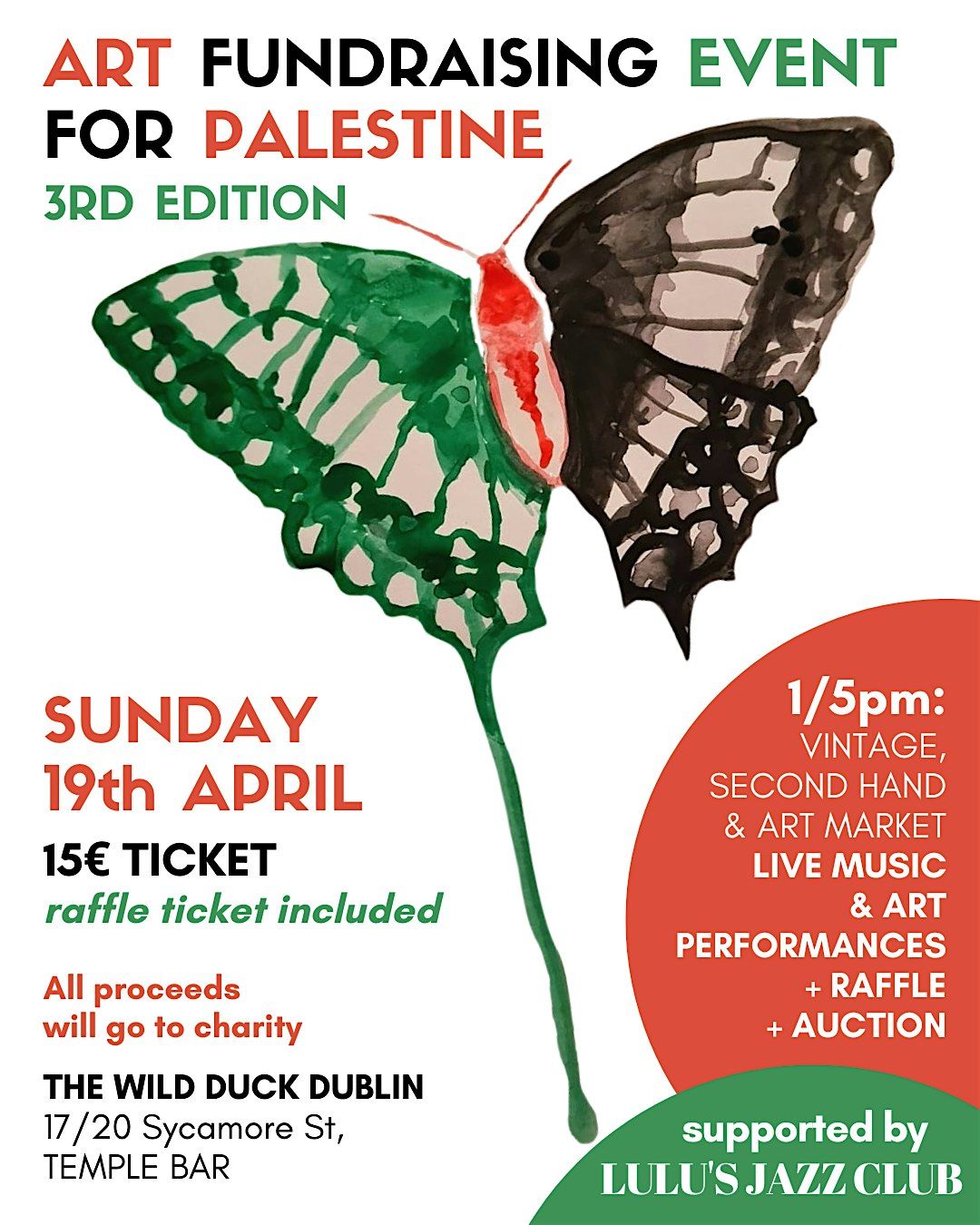 Join us on Sunday, April 19th at The Wild Duck Dublin for an afternoon of community, creativity, and solidarity in support of Palestinian families and aid organisations.
