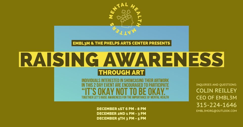 Calling all local artists, and students! The Phelps Art Center and EMBL3M are partnering up! EMBL3M focuses on education and direct access to crisis services for people going through any number of mental health and addiction. Our profound impact is teens 14-24, but we strive to help anyone and guide anyone in the right direction.