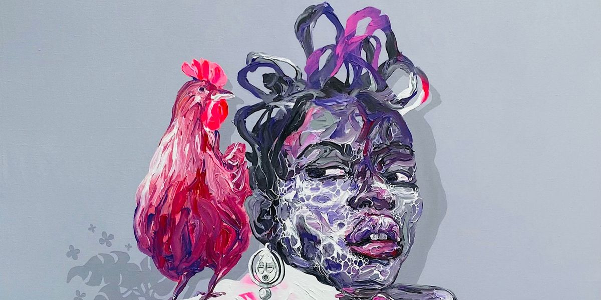 Chantel Walkes, a self-taught artist from Canada crafted her original works using beads, fabric, foil, photography, rhinestones, and sequins, for example. While Lord Ohene, a Ghanaian portraiture and figurative artist whose works reference expressionism, uses acrylic, Mouso black, and oil pastels to tell stories of African journeys, memories, routs, and migration.